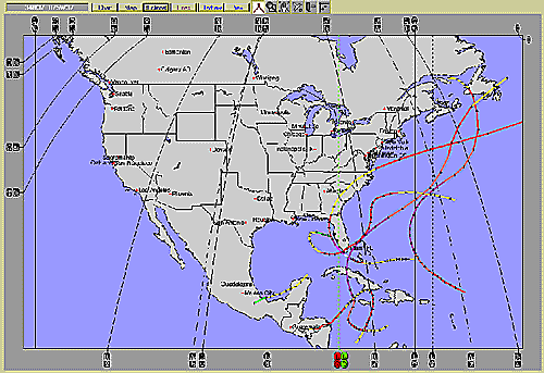 Tracking: This new feature in Version 3 allows you to study geographical hot spots with Solar Maps. The program comes with a database installed of Atlantic hurricanes from 1851 to 2002 – and with the capability to download additional hurricanes from the Unisys web pages. This same system can be used for graphing the locations of earthquakes (or fault lines), volcanoes, or the tornadoes of a particular season.